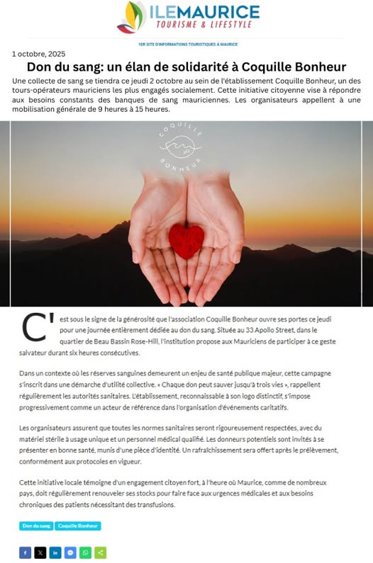 Ile Maurice : Blood donation: a surge of solidarity at Coquille Bonheur