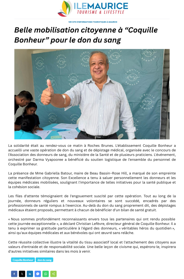 Ile Maurice : Great citizen mobilization at “Coquille Bonheur” for blood donation