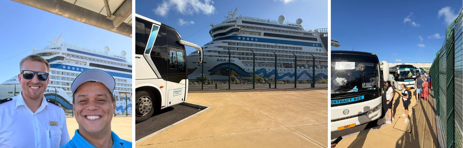 Retour sur les 6, 7 et 8 janvier 2026 : Coquille Bonheur a eu le plaisir d’accueillir à l’île Maurice son premier navire de croisière de l’année, l’élégant AIDA Stella.