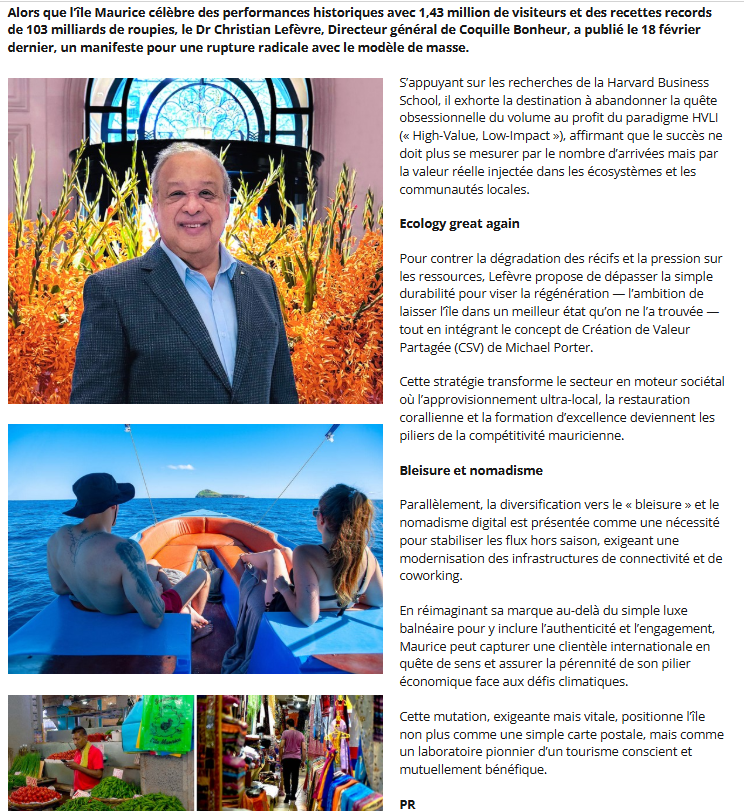 Destination Mauritius: Christian Lefèvre advocates for Regenerative Tourism