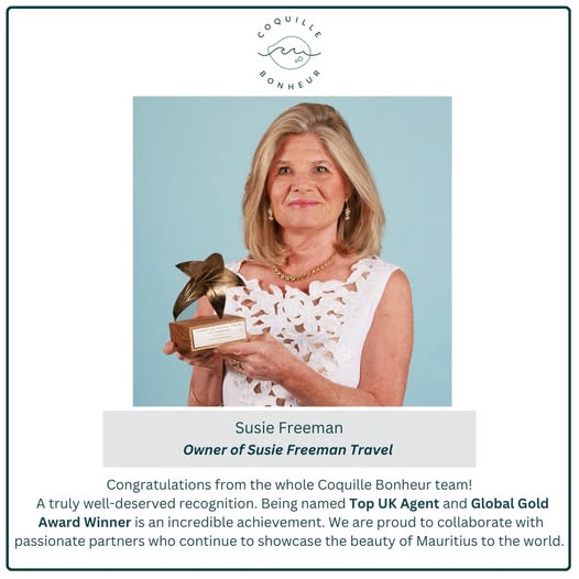 Warmest congratulations to Mrs Susie Freeman and the entire Susie Freeman Travel team on this outstanding achievement!